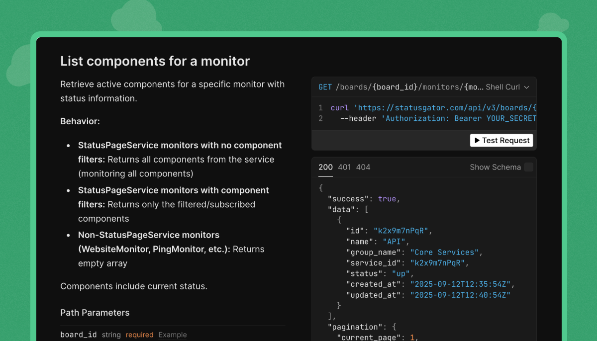 StatusGator’s REST API now supports the ability to fetch the components of service. Get the status of individual regions and products from thousands of status pages.