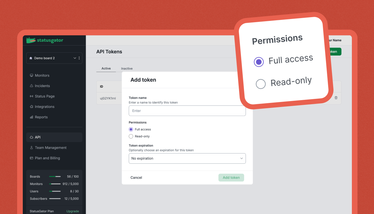 API tokens now support read-only and full access permissions, giving you better security and more control over how your data is accessed.