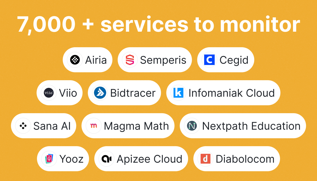 This month, we added another batch of service monitors to StatusGator. Among the latest additions are Airia, Semperis, Cegid, Viio, Magma Math, and numerous others. Can’t find your essential service? Request it here, we’ll get it added – usually within 24 hours.