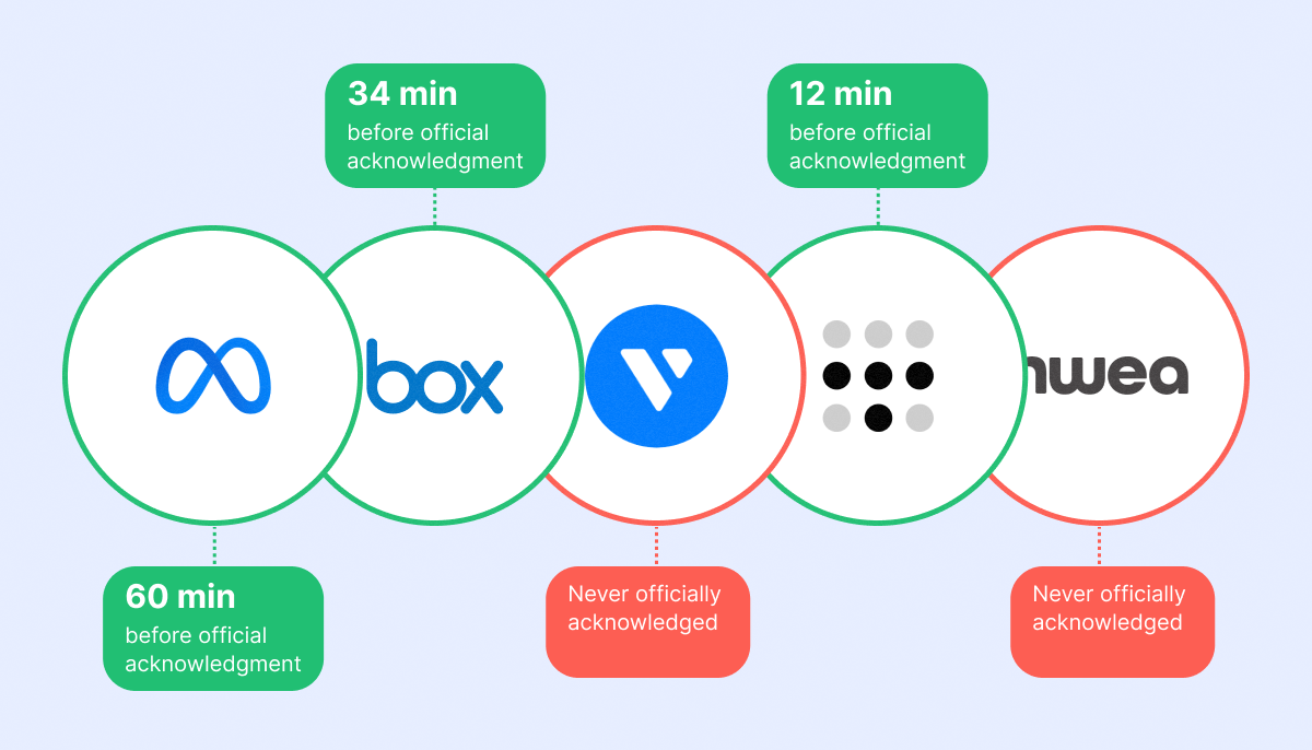 Meta – StatusGator notified ⏱️ 1 hour before official acknowledgment
