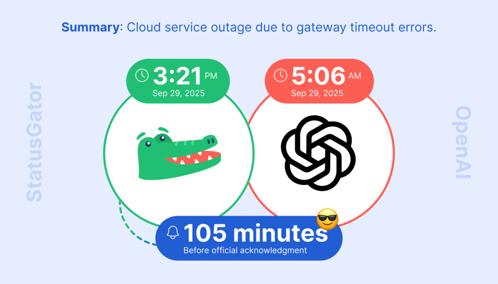 StatusGator detected: 36 minutes earlier (18:02 UTC, September 29, 2025)